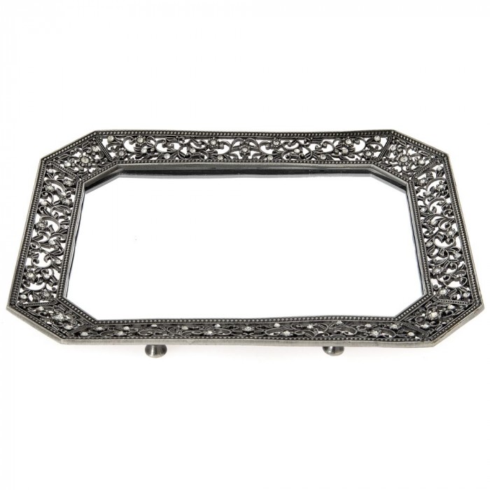 Метален поднос,огледална повърхност с камъни, 21х26 см