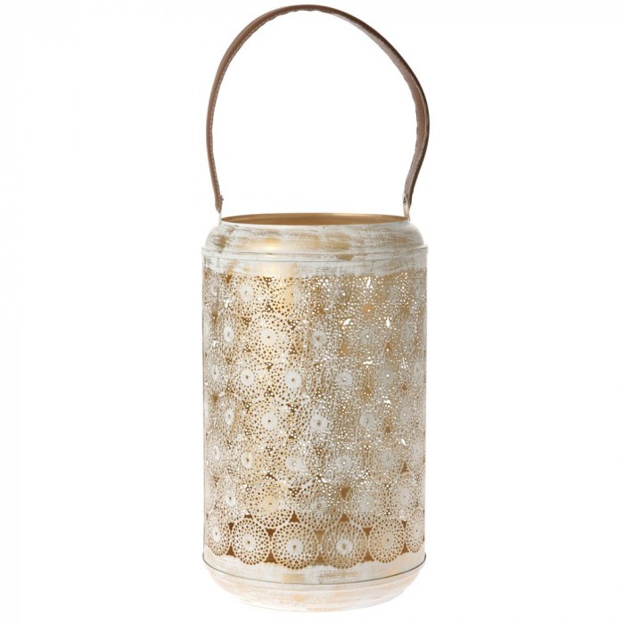 Метален светилник с кожена дръжка, злато, 26х43 см