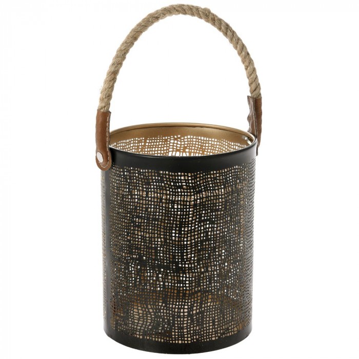 Метален светилник с въжена дръжка, черен, 15х20 см
