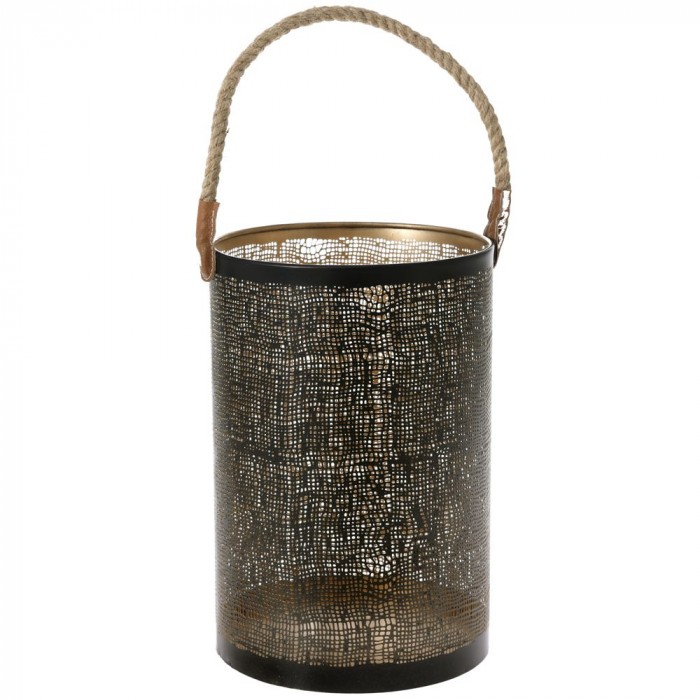 Метален светилник с въжена дръжка, черен, 20х30 см