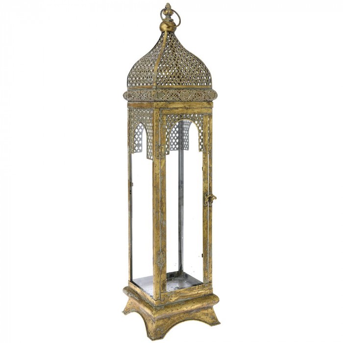 Метален светилник със стъклени страници, злато, 19х19х83 см