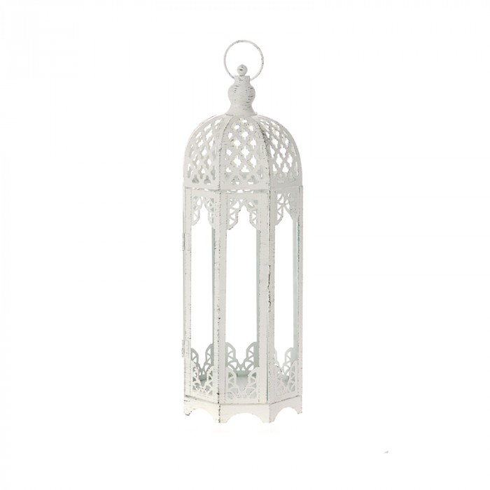 Метален светилник, бял, ANTIQUE, 13х13х39 см