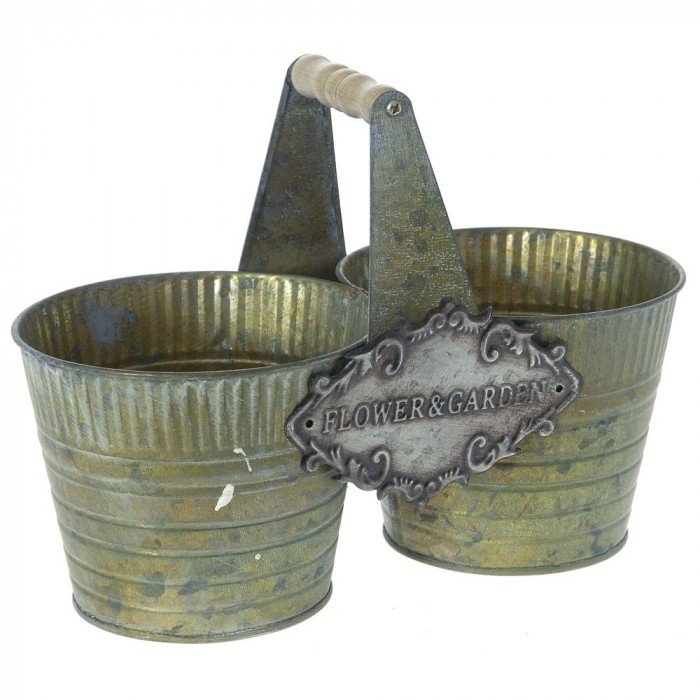 Метална кашпа зелена двойна, 25Χ12Х11СМ
