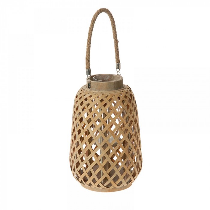 • Бамбуков светилник с дръжка,плетка, натурал, 24х24х37 см