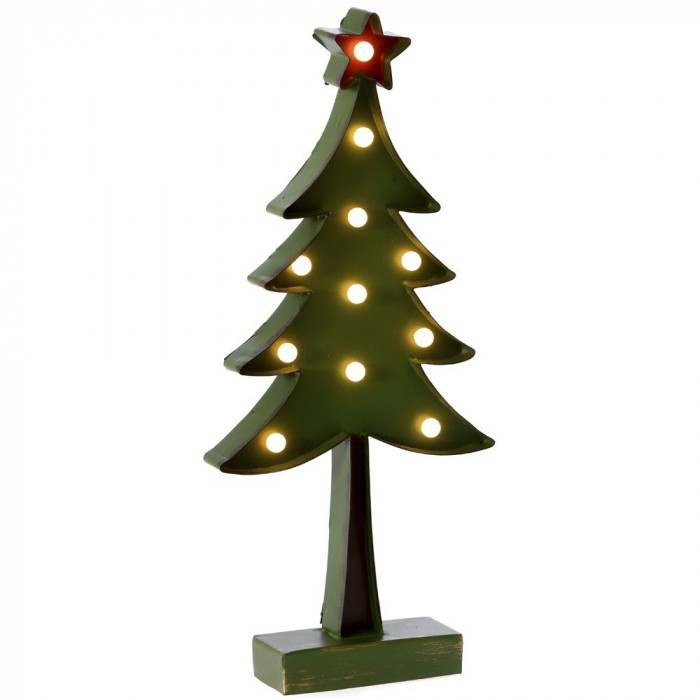 Метална светеща зелена елха, 15х33 см