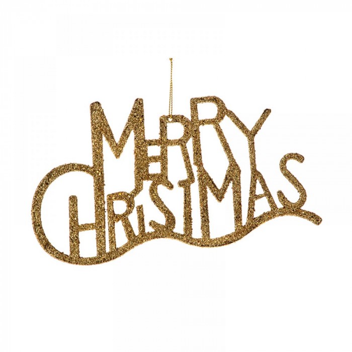 Надпис пластик "MERRY CHRISTMAS", злато, 19х10 см