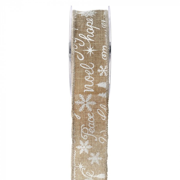 Панделка зебло щампа, MERRY CHRISTMAS, беж, 4,5 Х 9,10 М