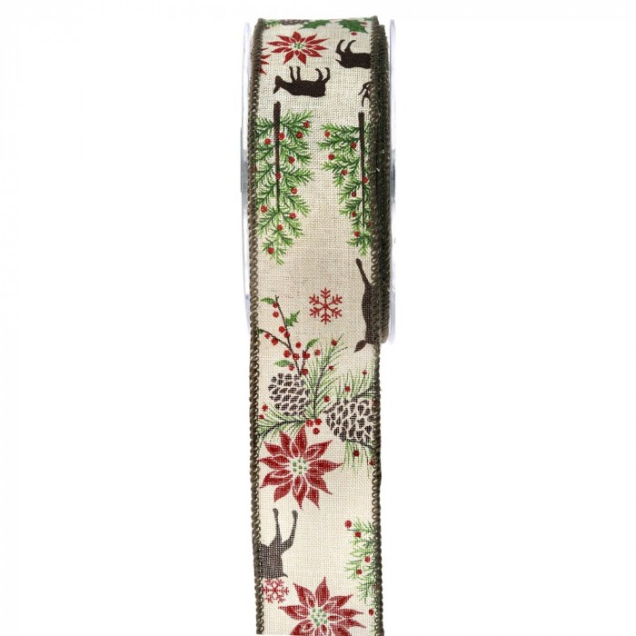 Панделка щампа, коледа в гората, зелен кант, 4,3 Х 9,1 М