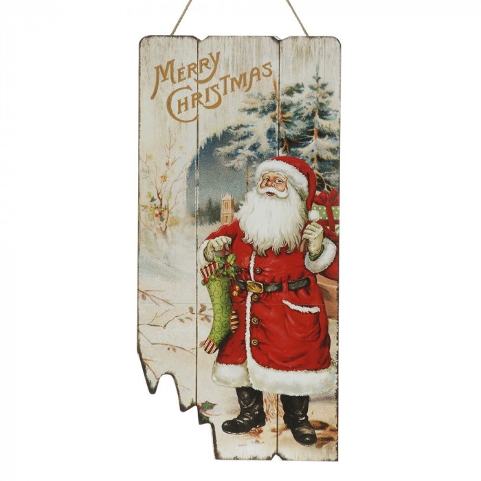 • Пано за стена, Дядо Коледа с чорап, дърво, 24х50 см