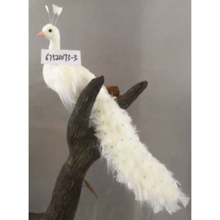 Паун покрит с бели пера и камъни, 20х15х65 см