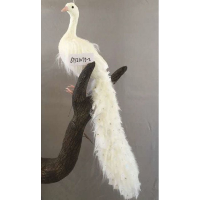 Паун покрит с бели пера и камъни, 25х19х100 см
