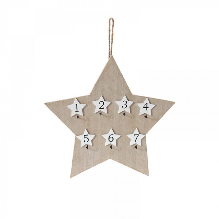 Дървена закачалка за ключове, звезда и цифри, 30Х37СМ