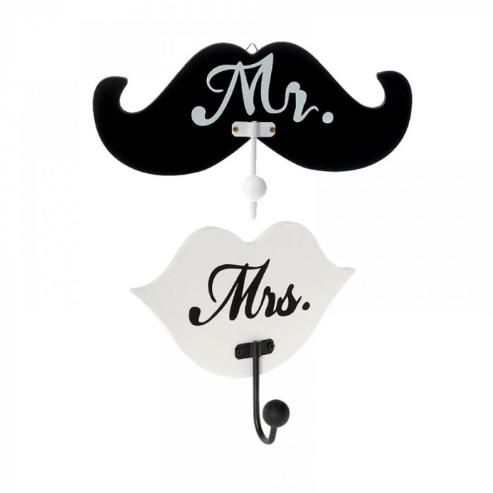 Дървена закачалка “MR & MRS“, черно и бяло, к-т 2 бр