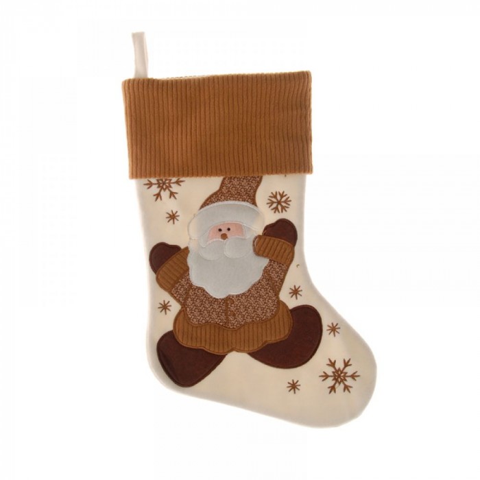 Ботуш за подарък, бяло и кафяво, Дядо Коледа, 45 см