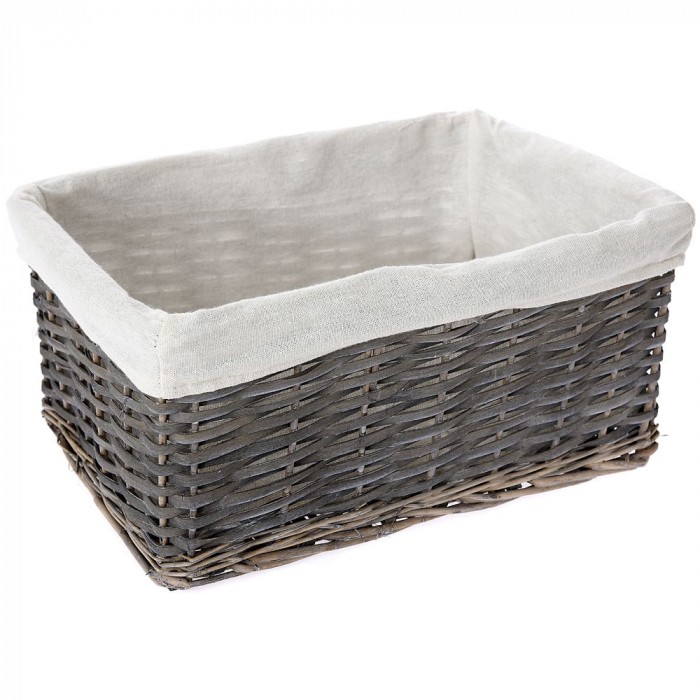 Плетен кош сив, с плат, 38х19х18 см