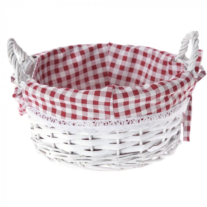 Плетена кошница с каре плат, бяла, Ф24х11 см