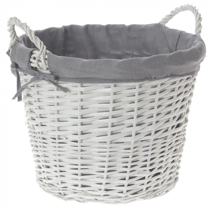 Плетена дълбока кошница, кръг, бяла, 38х30 см