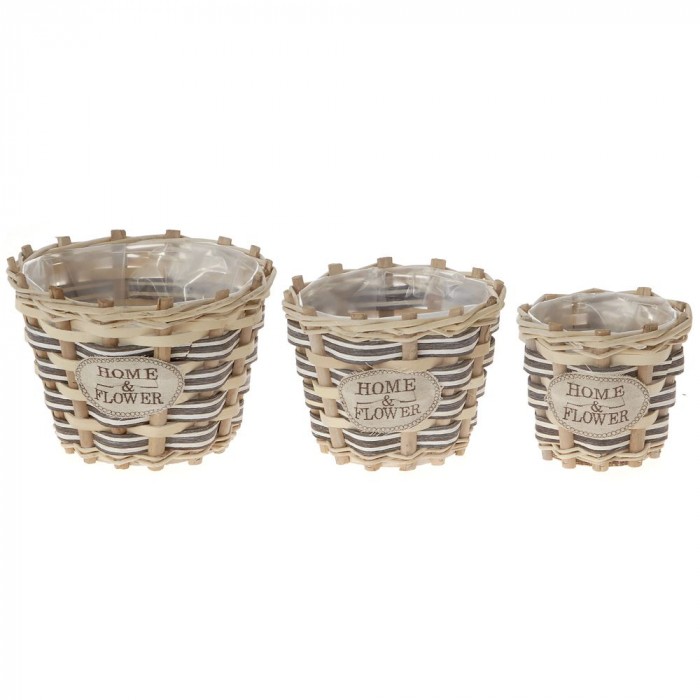 Плетени кашпи 3 бр HOME & FLOWER, дърво и слама, рейе