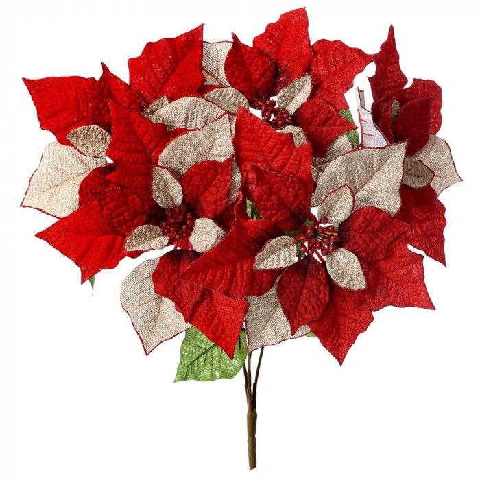 Букет коледни звезди, червени, велур и зебло