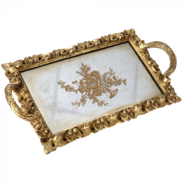 Поднос с огледална основа, полирезин, злато, 33х18 см