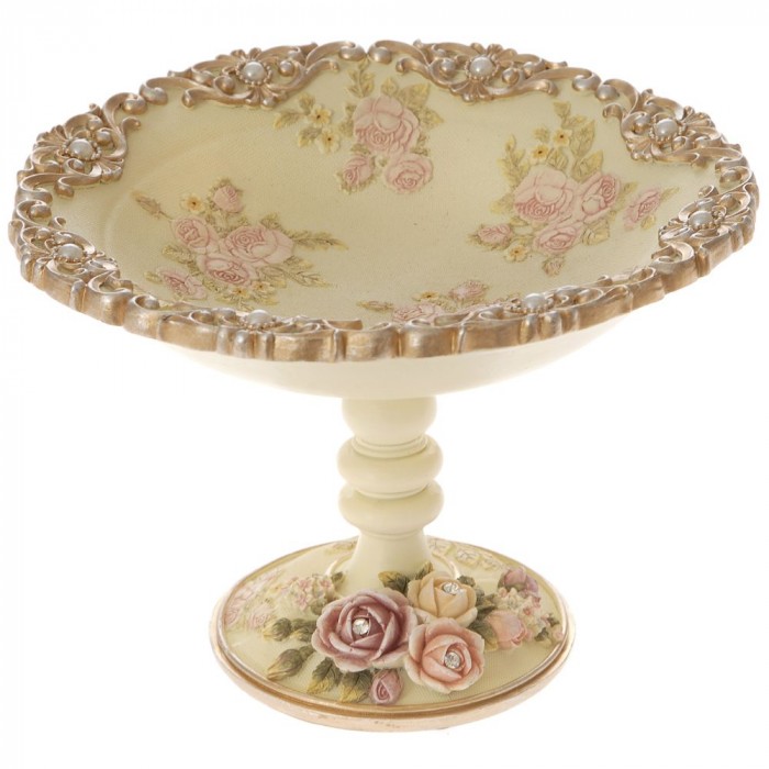 Поднос за торта, полирезин, розови рози, ф18х12,5 см