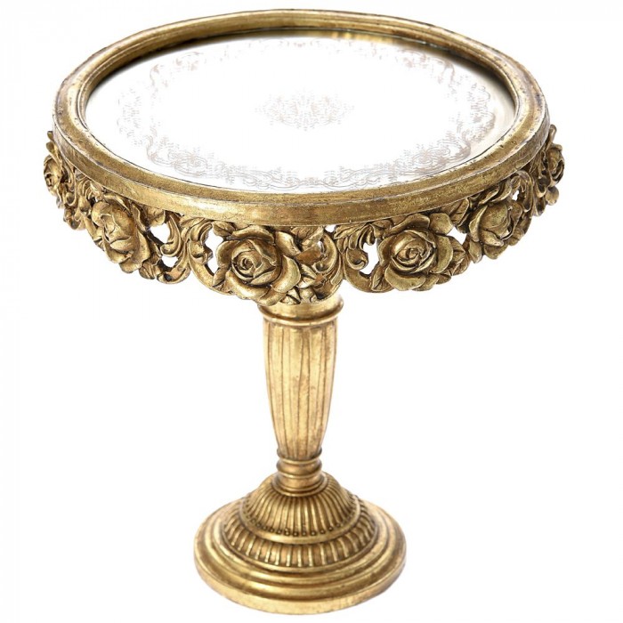 Поставка с огледална основа, полирезин, злато, Ф30х32 см