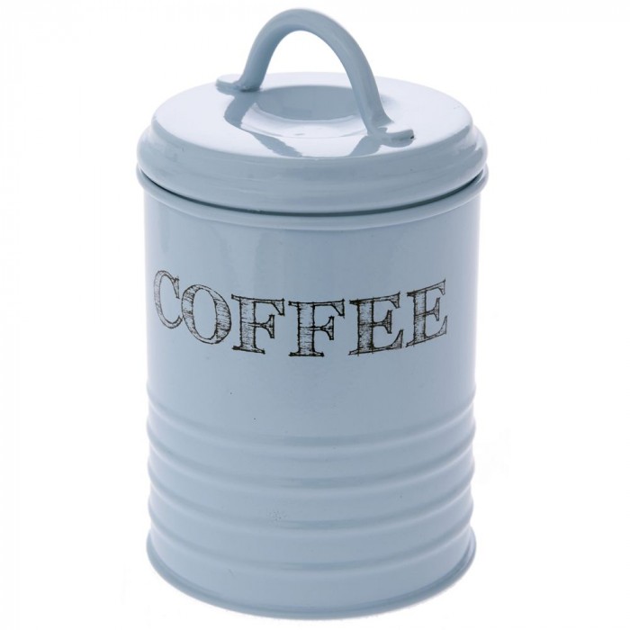 Буркан за кафе с капак, метал, син, Ф10х17 см