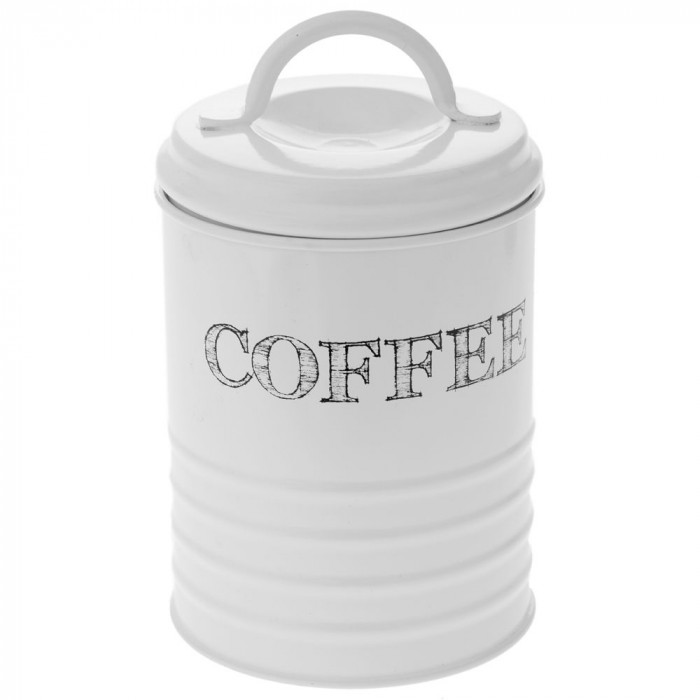 Буркан за кафе с капак, метал, крем, Ф10х17 см