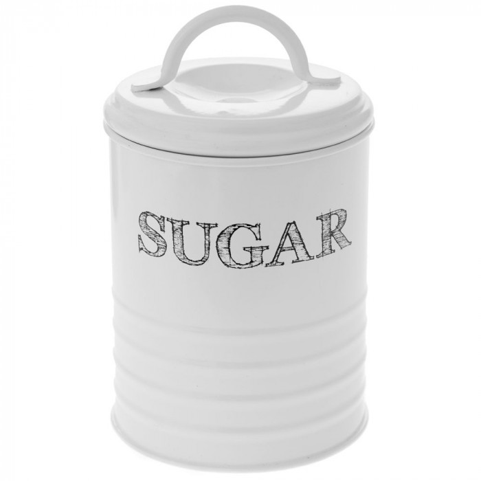 Буркан за захар с капак, метал, крем, Ф10х17 см