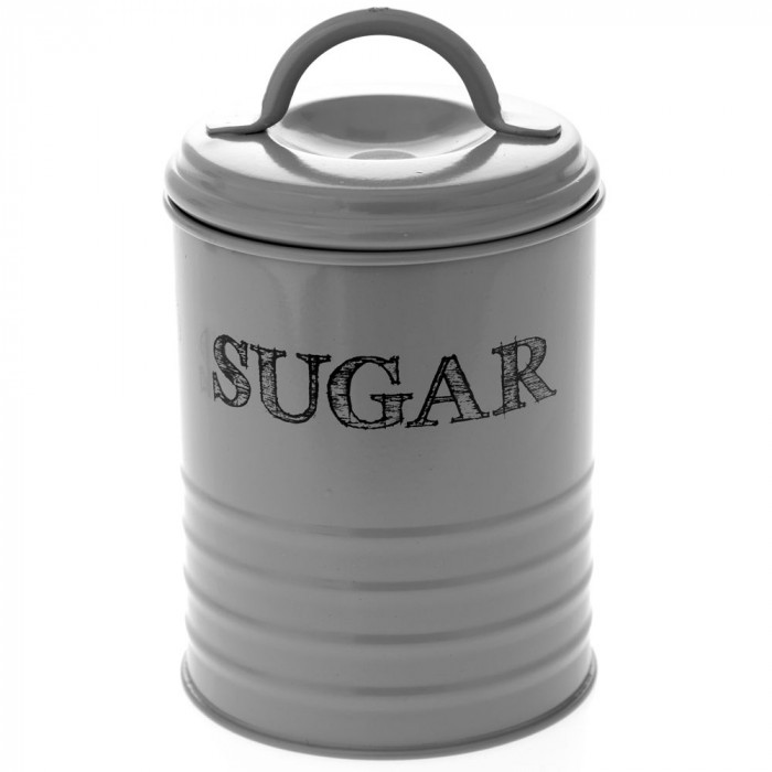 Буркан за захар с капак, метал, сив, Ф10х17 см