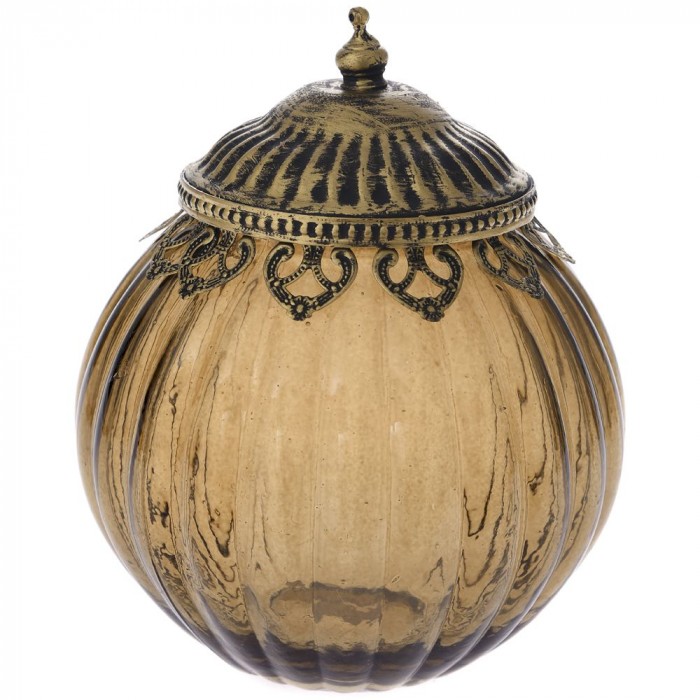 Буркан кафяво стъкло с метален обков и капак, Ф16х19см