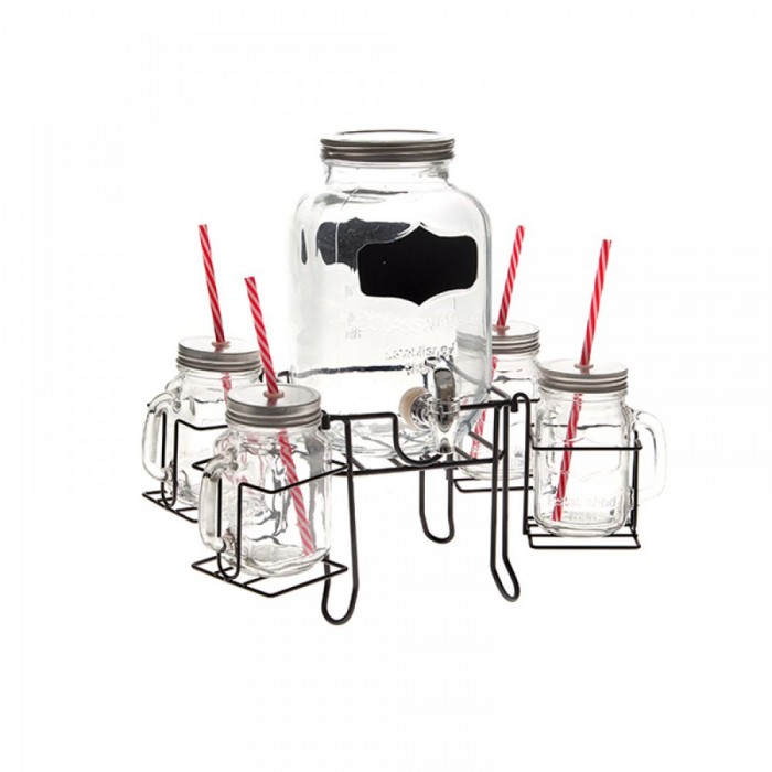 Буркан 3 Л. С канелка и 4 буркана със сламка х 450 мл.