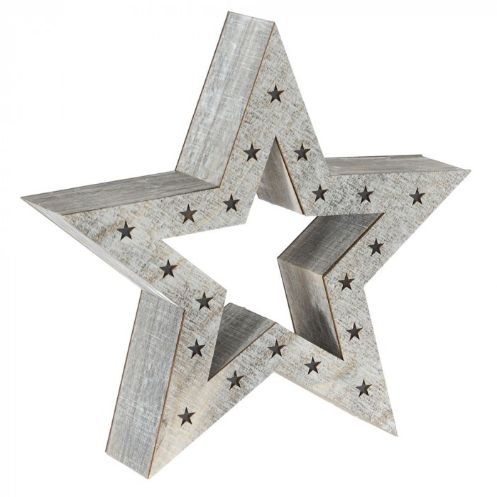 Светеща дървена фигура звезда, 36х8х35 см