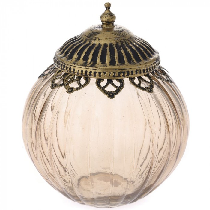 Буркан розово стъкло с метален обков и капак, Ф16х19см