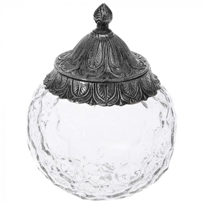 Буркан прозрачно стъкло с метален капак, сребро, Ф19х22 см