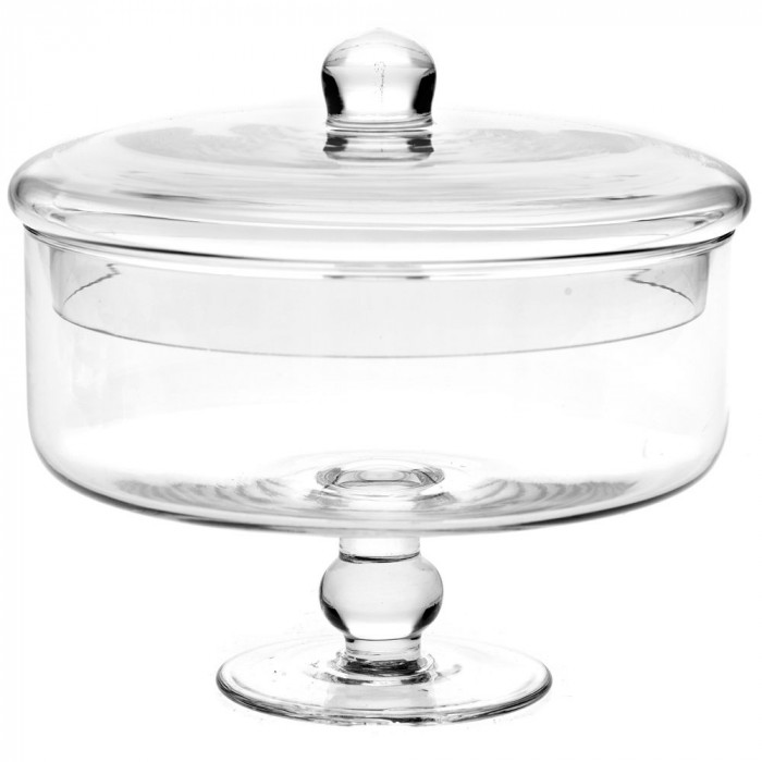 Буркан с капак на стойка, изчистено стъкло, ф20х20 см