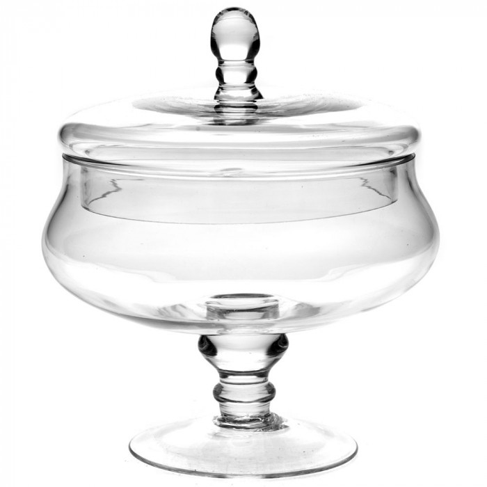 Буркан с капак на стойка, изчистено стъкло, ф23х26 см
