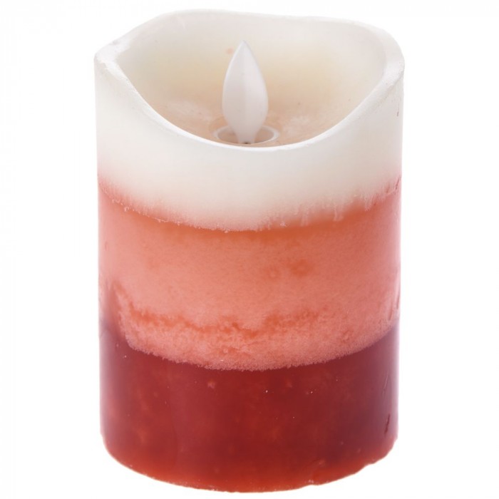 Свещ на батерии, червени нюанси, Ф7,5х10 см
