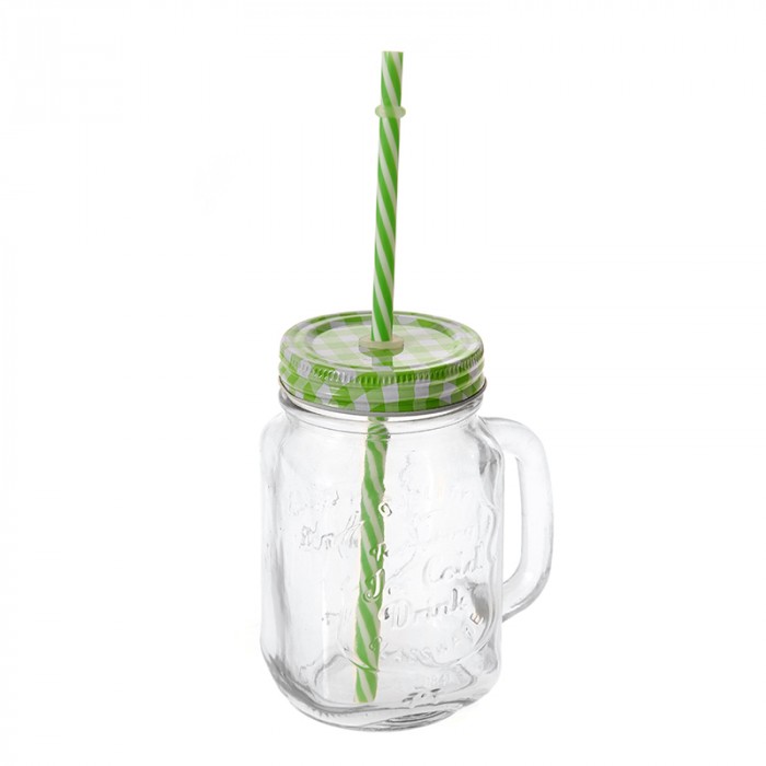 Буркан със сламка и дръжка зелен, 10Х13СМ