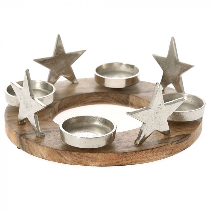 Свещник дърво с алиминиеви орнаменти, ф 30х20 см
