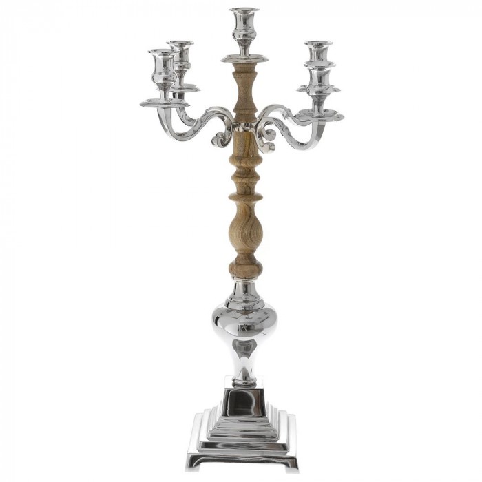 Свещник дърво и инокс за 5 свещи 38Х38Х71СМ