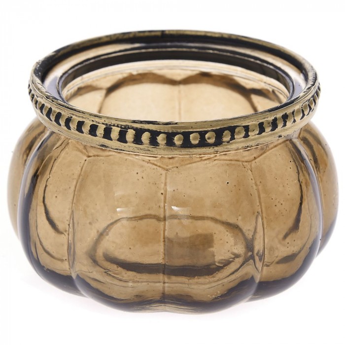 Свещник кафяво стъкло с метален обков, Ф9х6 см