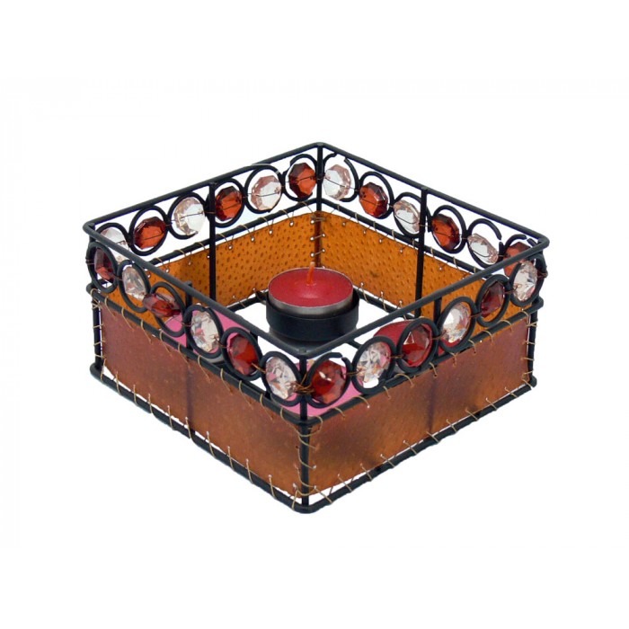 Свещник кожа каре,кристали кафе,15х7см.1м.(2/24)