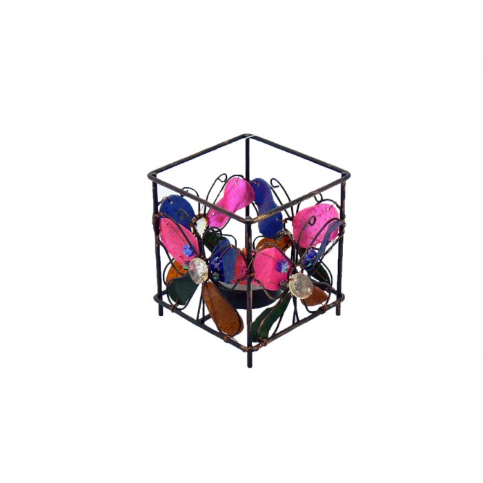 Свещник кожа пеперуда,ажур,9х9см.,1м.(4/36)