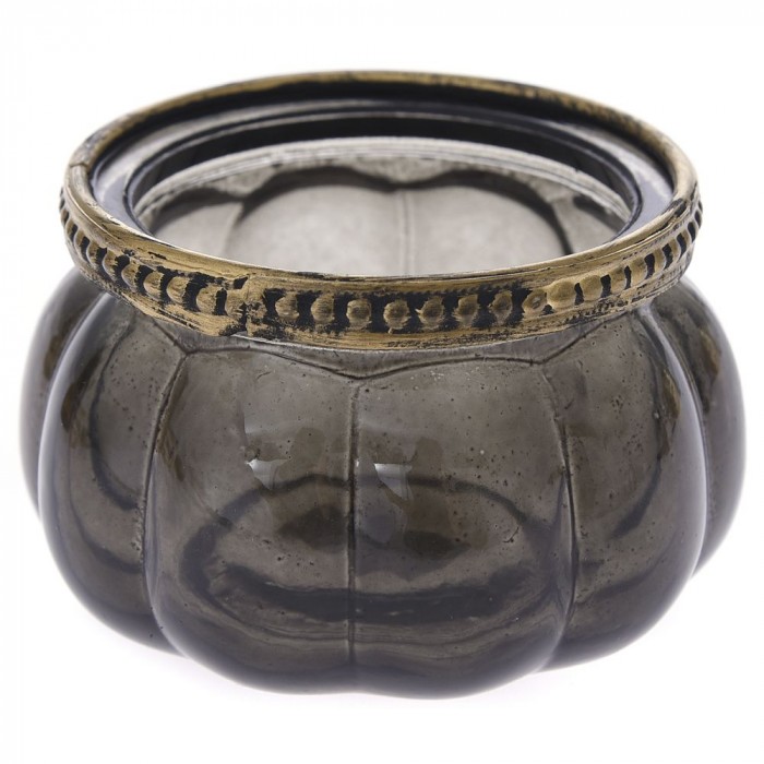 Свещник опушено стъкло с метален обков, Ф9х6 см