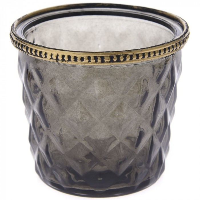 Свещник опушено стъкло с метален обков, Ф11х10 см