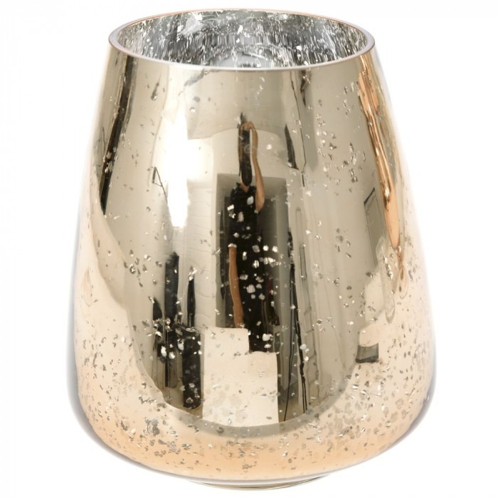 Свещник, розово стъкло, 20х23см