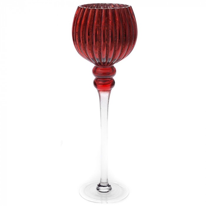 Свещник чаша със столче, червено стъкло, 13х40 см