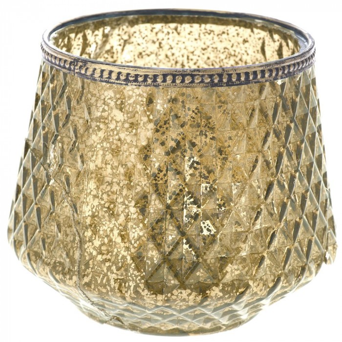Свещник стъкло с метален обков, злато, Ф16х13см