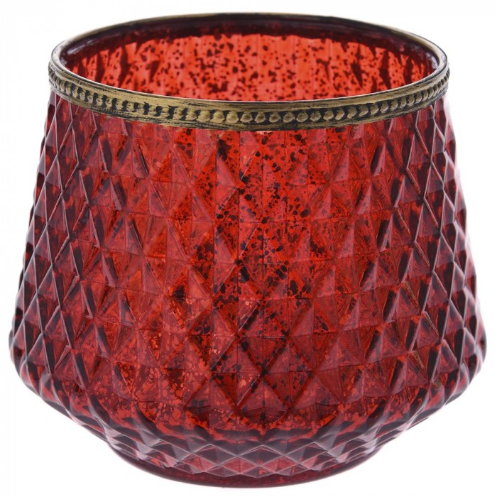 Свещник стъкло с метален обков, червен, Ф16х13см